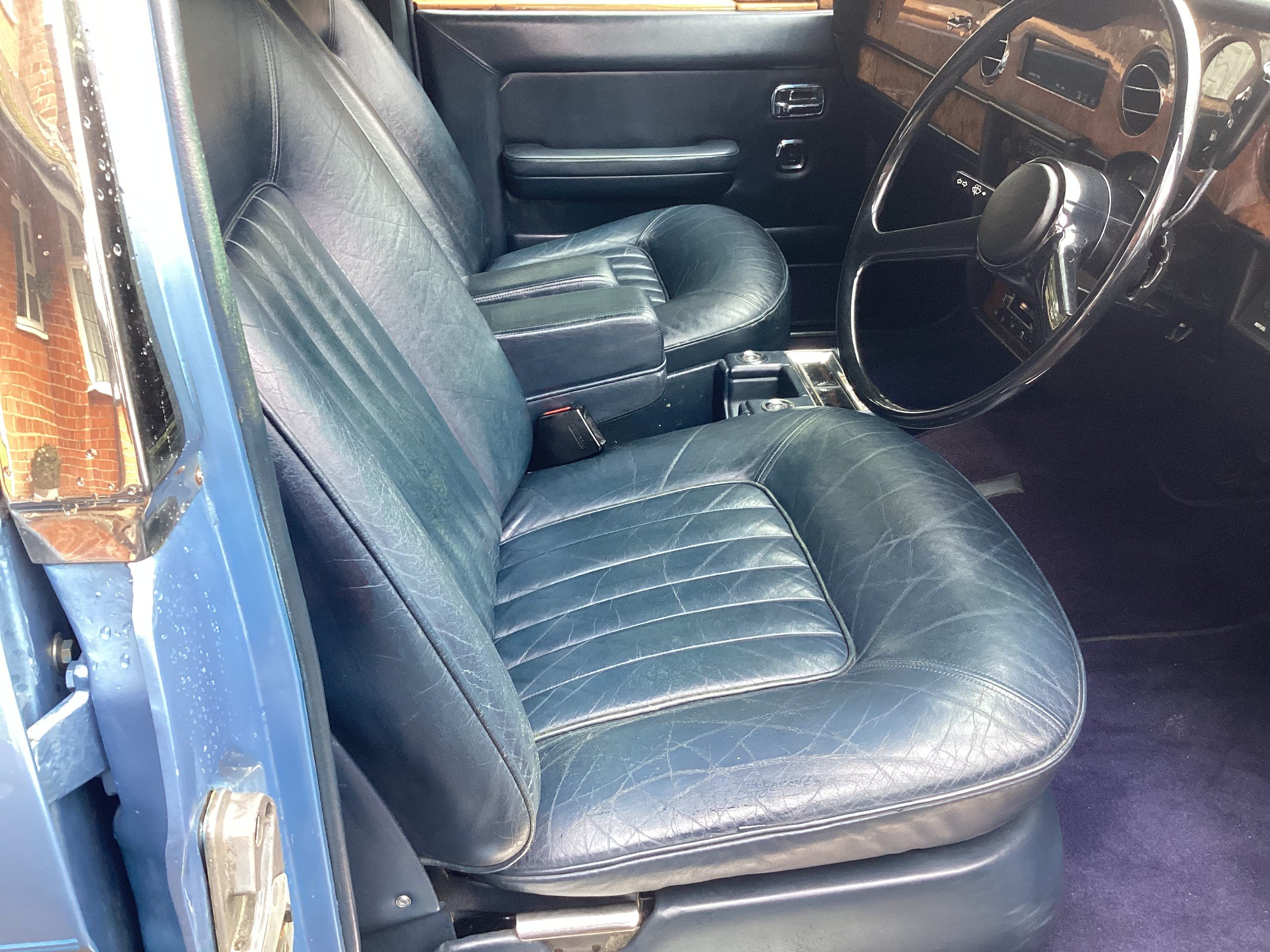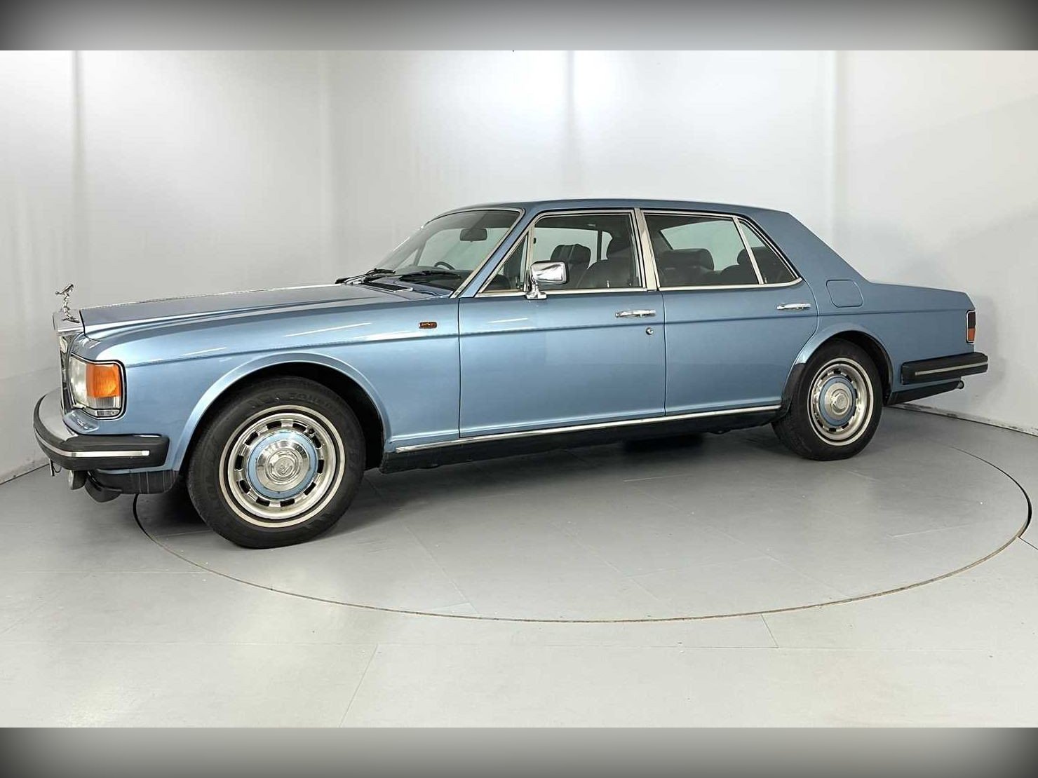 A stunning Low Mileage Silver Spirit finished in Light Ocean Blue Metallic with Dark Blue Leather interior. 34,300 miles recorded with a recorded speedo change at 4,000 making a total of approx 38,000 total. The condition backs up the mileage with an original Handbook pack and service book and invoices. There are many MOT's. White Wall tyres. Iced cold air conditioning. Hpi clear. MOT/ Ulez / Tax exempt. In stunning condition. Extended delivery and Warranty at extra cost.